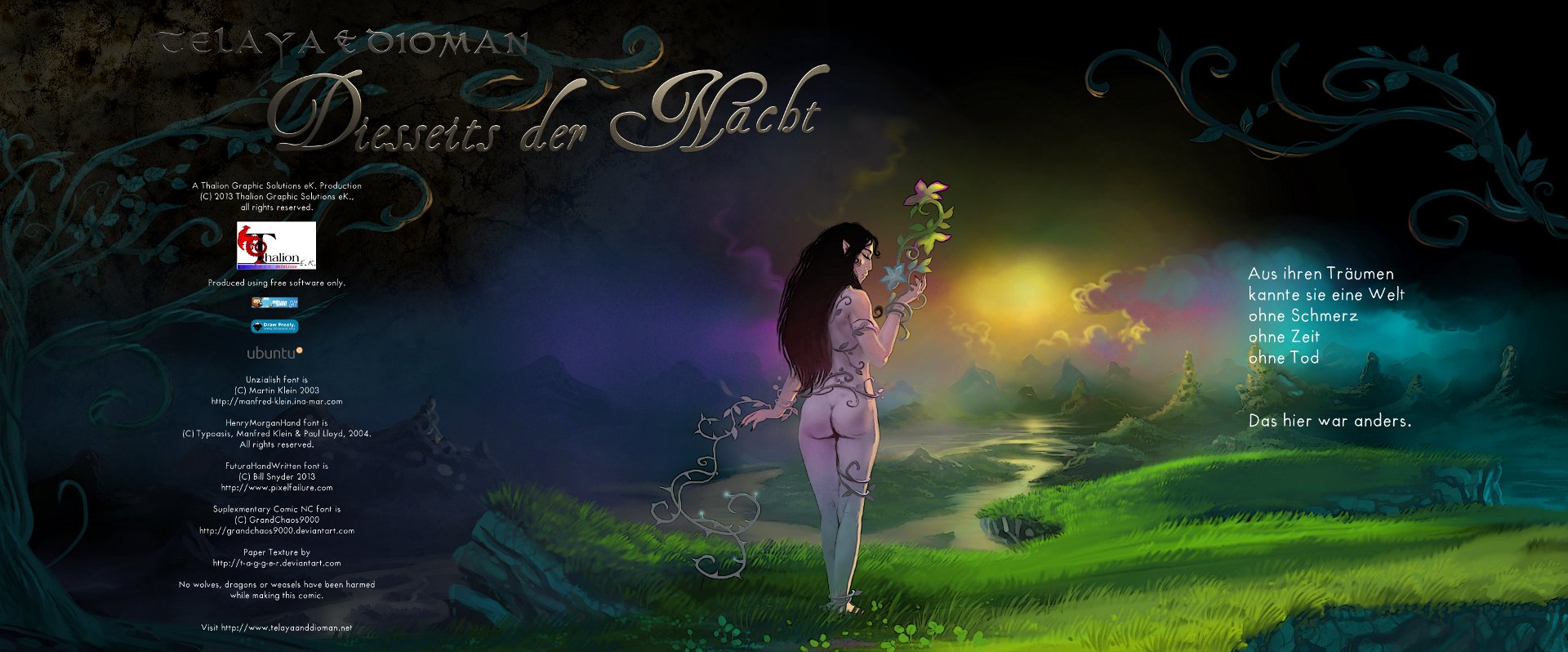 Telaya & Dioman is written as a series of four (or maybe more – I might decide to split one or more of the future books in half) comic books. The first one has been finished last year, and the second one is in the making – if all turns out well, it will be released at the end of 2014.